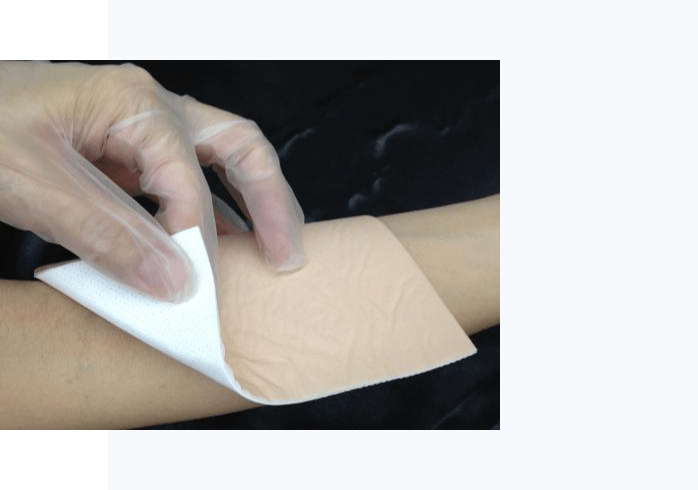 - Apply to the wound with a self-adhesive part.